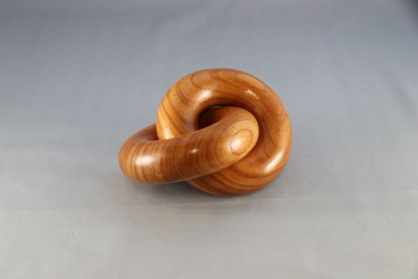 "ひとつの木から手作りで掘り込み、絶対に外れないふたつの輪にしていきます。